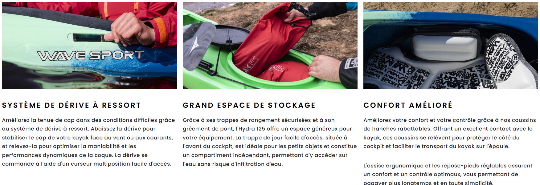 Equipements du kayak mer HYDRA LV Wavesport :